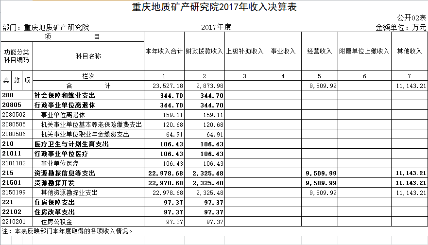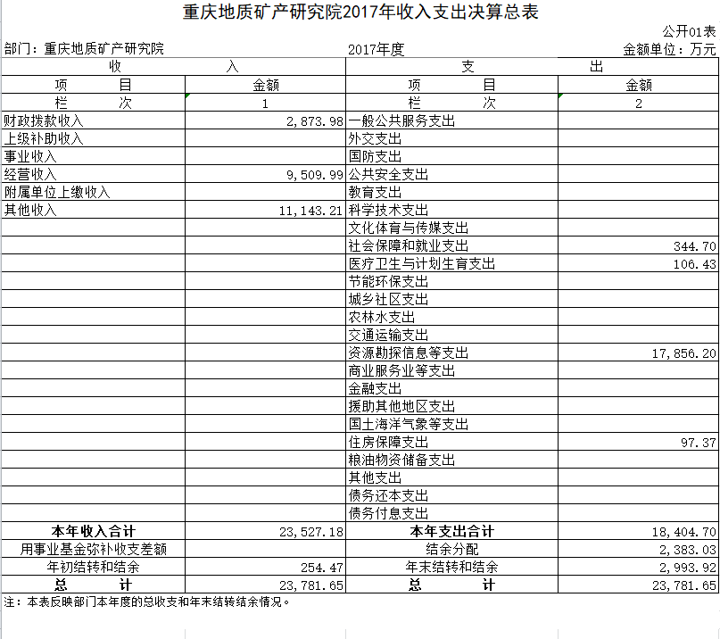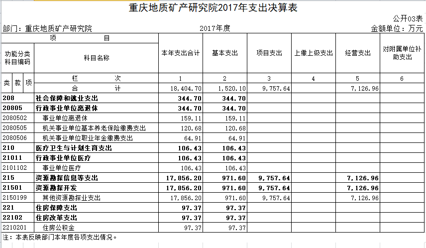 重庆地质矿产研究院(以下简称我院)系重庆市国土资源和房屋管理局直属科研事业单位和技术支撑单位,属市财政局一级预算单位,事业单位分类为公益二类,财务管理和会计核算执行《地质勘查单位财务制度》和《地质勘查单位会计制度》。我院宗旨为开展地质矿产科学技术研究、应用及普及工作,提供地质矿产科学技术支撑与服务。主要的职责任务为承担基础地质调查科学研究与技术服务工作;承担矿产资源勘查开发科学研究与技术服务工作;承担地质环境保护与地质灾害防治科学研究与技术服务工作;承担国土资源科技创新基础平台与人才培养平台建设和运行工作;在资质范围内开展地质矿产、地质环境、土地资源、规划编制、检测检验、土地污染防治、测绘等相关技术咨询与市场服务工作。