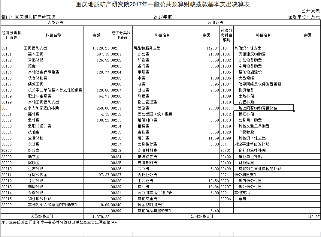 本部门2017年度一般公共财政拨款基本支出1,520.10万元。其中:人员经费1,370.23万元,较上年减少283.24万元,这是由人员变动及国家薪酬调整造成的。人员经费用途主要包括基本工资、津贴补贴、其他社会保障缴费、机关事业单位基本养老保险缴费、职业年金缴费、离退休费、住房公积金和其他对个人和家庭的补助支出。公用经费149.87万元,较上年减少35.71万元,这也是由于人员变动导致的经费减少。公用经费用途主要包括办公费、印刷费、咨询费、水费、电费、邮电费、差旅费、维修(护)费、会议费、培训费、公务接待费、劳务费、工会经费、福利费、公务用车运行维护费、其他商品和服务支出。
