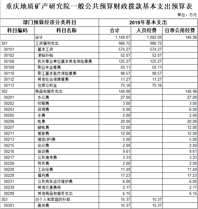 重庆地质矿产研究院2019年部门预算情况说明